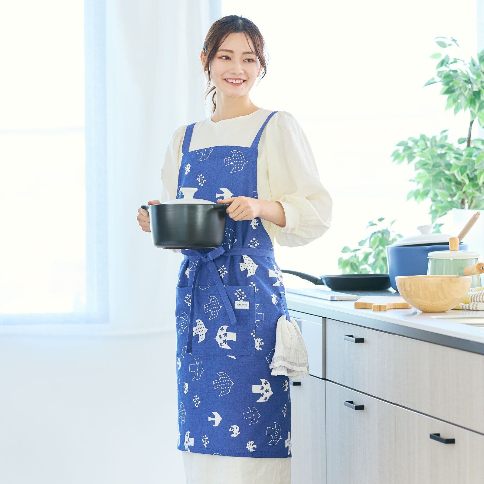 【着用しやすいクロスタイプのエプロン】