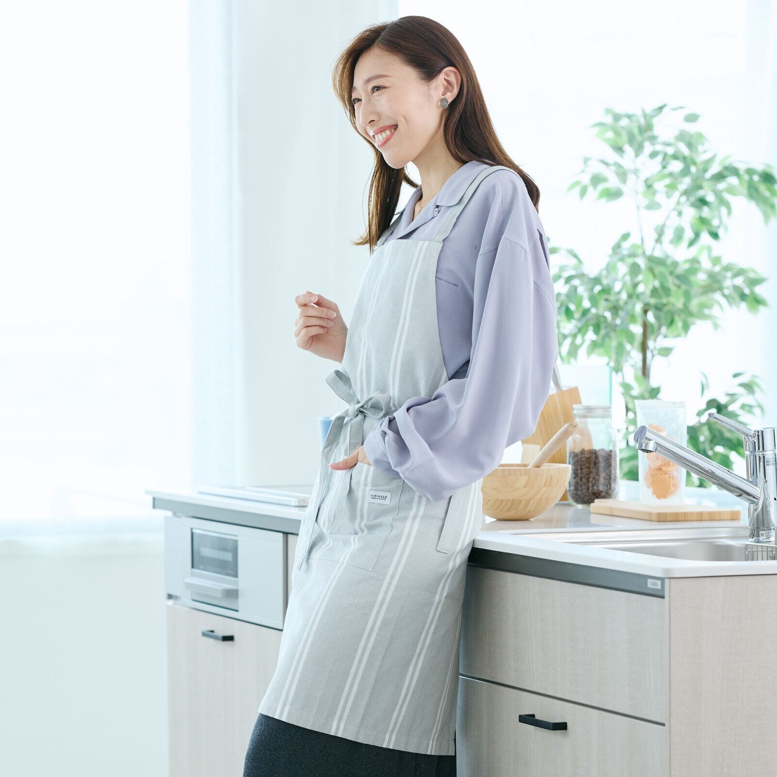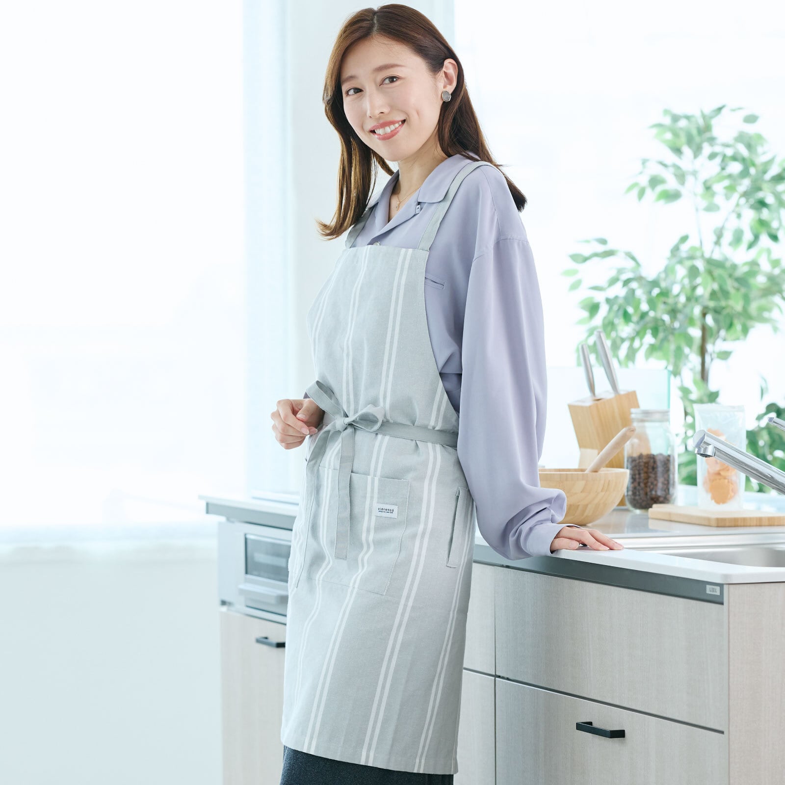 【着用しやすいクロスタイプのエプロン】